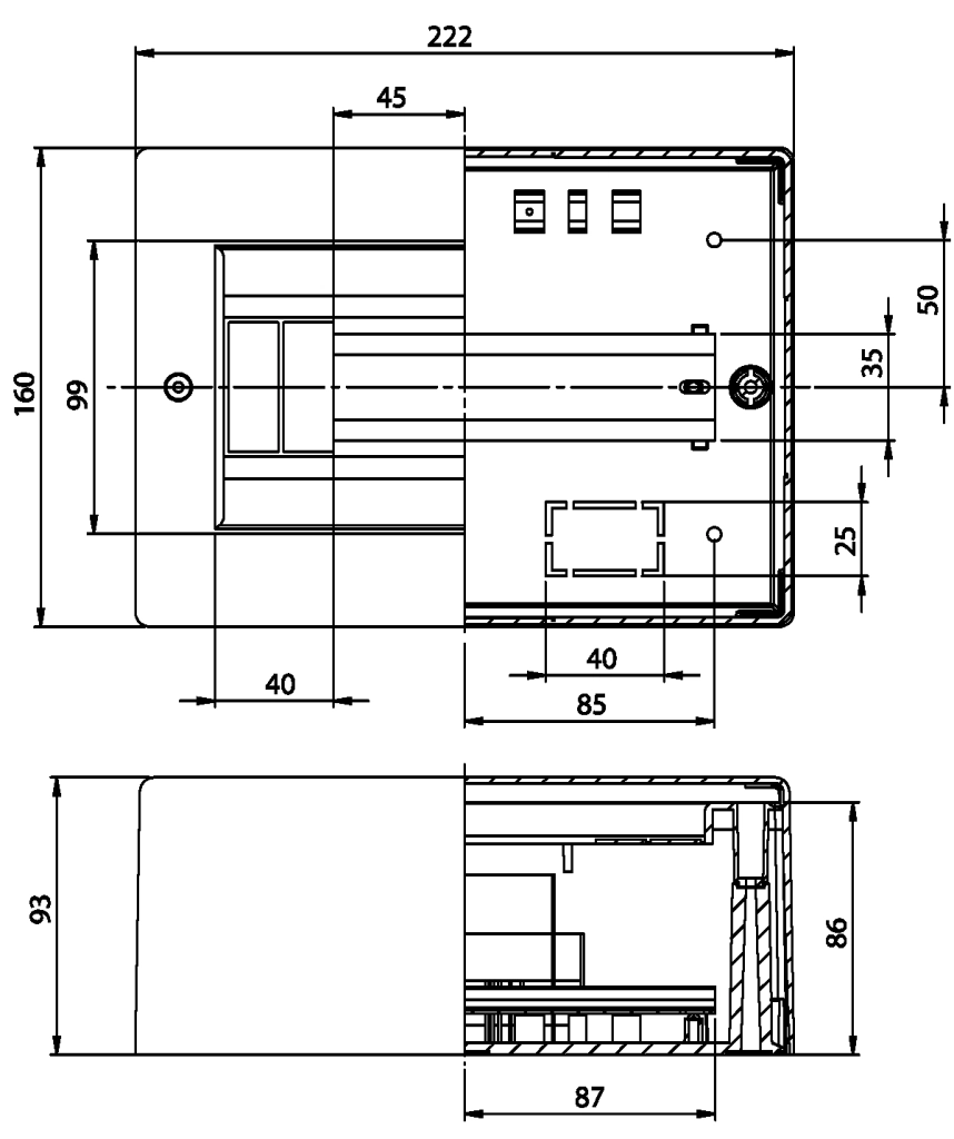 • плоское основание и увеличенное расстояние от задней стенки до DIN-рейки обеспечивает удобство монтажа и ввод проводов;