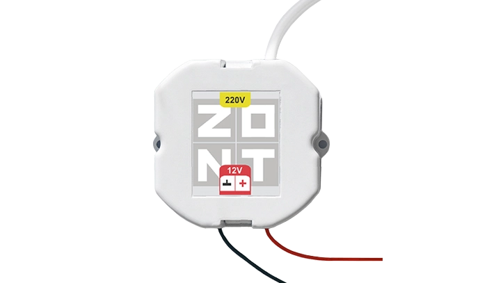 Компактный источник (блок) питания стабилизированного напряжения 12В для питания комнатных термостатов. Имеет автоматическое восстановление выходного напряжения после снятия короткого замыкания (КЗ) или перегрузки.