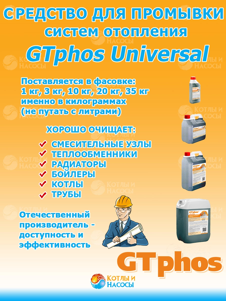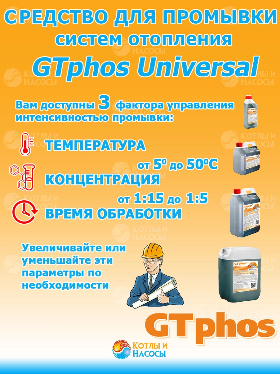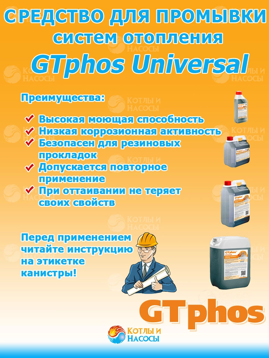 GTphos®Universal - профессиональное, сильнодействующее средство в форме концентрата. Состав GTphos®Universal является коммерческой тайной производителя, но мы можем ее немного приоткрыть. Universal состоит из комплекса органических и неорганических кислот, основные из них : Ортофосфорная, Лимонная, Щавелевая, Соляная, Сульфаминовая, Муравьиная и т.д., так же в составе присутствуют несколько видов ингибиторов и ПАВов.