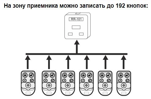 На зону приемника можно записать до 192 кнопок