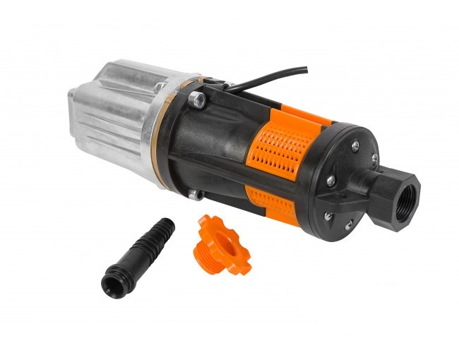 - Выходной штуцер расположен по оси насоса, что позволяет подвесить насос на шнуре без перекоса.