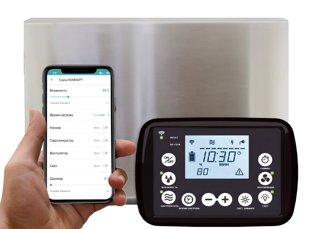 Комплекс управления сауной НЕВОТОН обеспечивает: