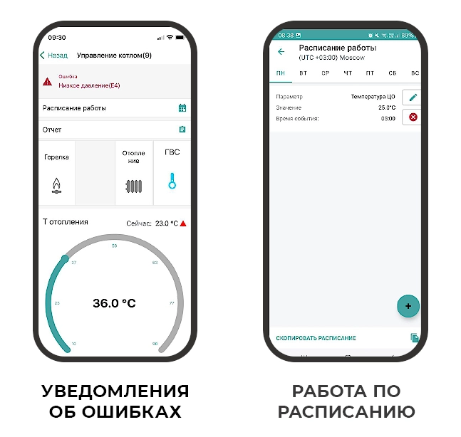 - Оповещения об ошибках котла через PUSH-уведомления