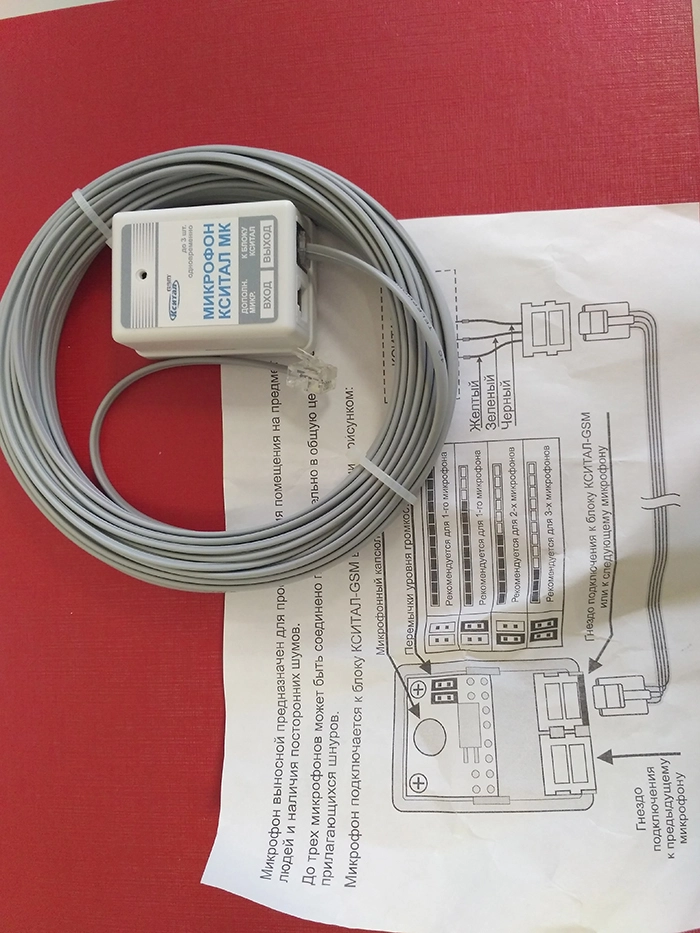 Выносной микрофон КСИТАЛ МК позволяет прослушивать помещение, в котором расположен посредством GSM связи через модуль управления и контроля КСИТАЛ GSM.