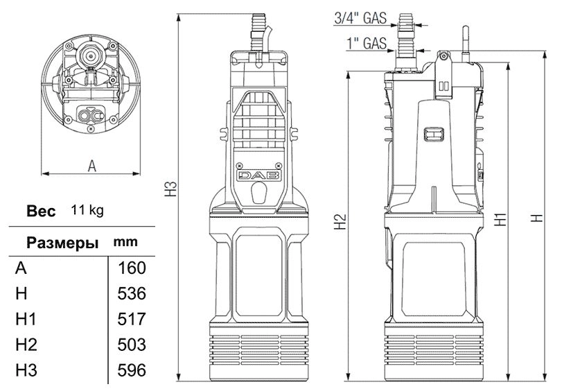 Электронные компоненты защищают насос при работе всухую, то есть при отсутствии воды (функция «anti-DRYRUN»).