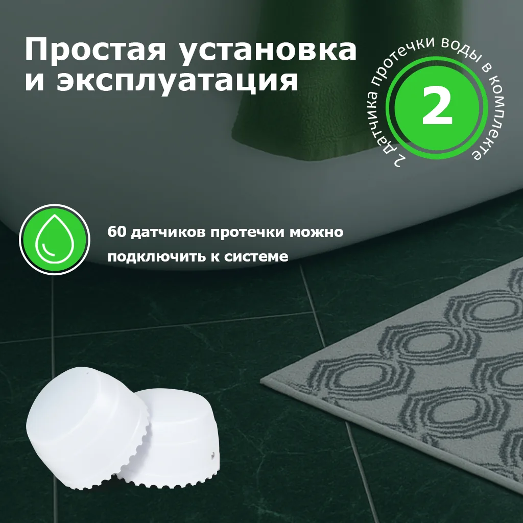 Просто положите их в удобном месте, и они подадут сигнал в случае протечки. 1 датчик уже идёт в комплекте!