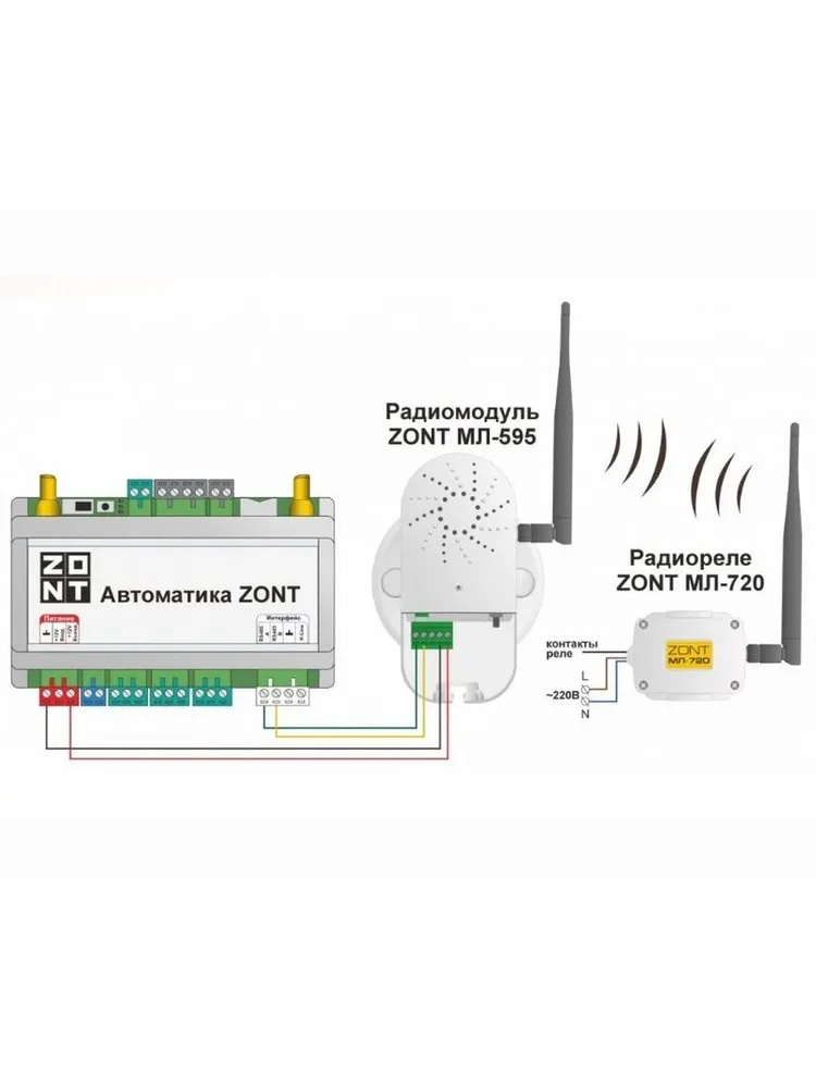 Для подключения радиореле к головному устройству необходим радиомодуль ZONT МЛ-595 или радиомодуль МЛ-590 в новом корпусе (приобретается отдельно).