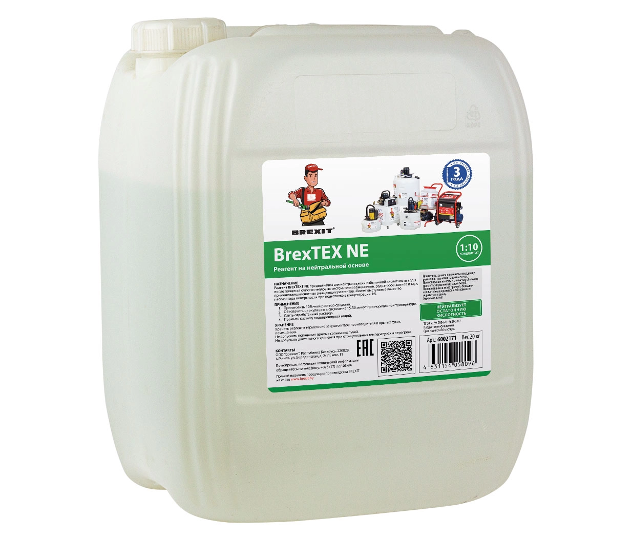Реагент BrexTEX NE предназначен для нейтрализации остаточной кислотности в оборудовании после очистки теплообменника кислотными реагентами BrexTEX. Допускается к применению с металлами состоящими из: меди, латуни, алюминия, стали, нержавеющей стали, сплавов легких металлов. Применение такого рода реагентов, является обязательным после использования промывающих средств на теплообменниках, котлах, отопительном оборудовании.