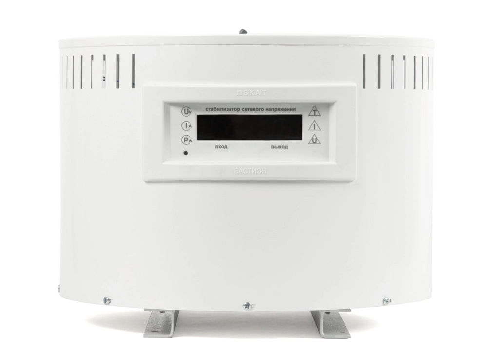 Стабилизатор напряжения для всего дома серии PRO. Мощность нагрузки — до 10 кВА. 16 ступеней регулирования. Точность стабилизации — 3,5%. Рабочий диапазон напряжения сети — 120...280 В. Расширенный диапазон напряжение сети — 80...295 В. 4 температурных датчика для защиты от перегрева. Тройная защита от перегрузки. Микропроцессорное управление и «мягкое» переключение ступеней. Стабилизация вольтдобавочного типа на симисторных ключах с запасом по мощности. Цифровой дисплей отображает реальное напряжение, ток, мощность по входу и выходу. Конвективное охлаждение без вентилятора, бесшумная работа. Защитное отключение при аварийно низком/высоком напряжении с автоматическим восстановлением. Кронштейны для установки стабилизаторов серии SKAT ST на стене.