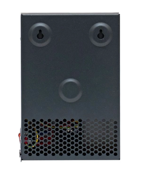 Стабилизатор крепится на стену с помощью специальных выемок на задней стороне корпуса, в которые вставляются прикрученные к стене саморезы, дюбель-гвозди или шурупы с крючком.