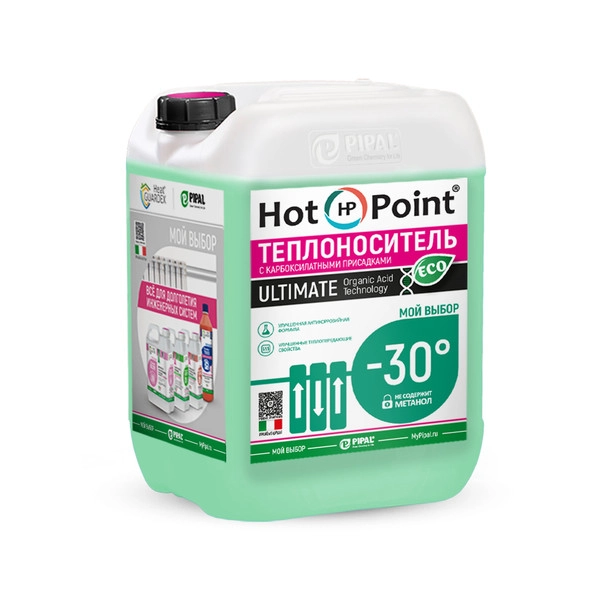 Теплоноситель (хладоноситель) HotPoint ULTIMATE ЭКО 30 предназначен в первую очередь для использования в автономных системах замкнутого типа, в частности в двухконтурных котлах и в системах вентиляции, кондиционирования. Серьезным преимуществом теплохладоносителей HotPoint ®, является наличие присадок обеспечивающих защиту системы от коррозии.