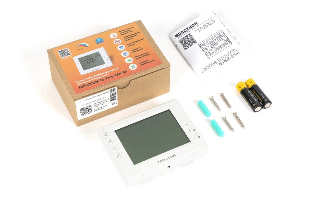 Термостат комнатный Teplocom TS-Prog-2АА/8А, проводной прогр. реле 250В 8А