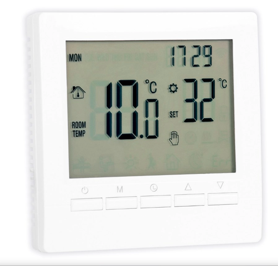 Программируемый комнатный термостат позволяет добиться большего комфорта и экономии за счёт составления гибкого расписания. Термостат автоматически изменяет температуру по графику, установленному пользователем. В будние дни в отсутствие жильцов в доме поддерживается экономичный режим, а к возвращению жильцов дом прогревается до комфортной температуры. Для обладателей загородного дома программируемый термостат будет поддерживать экономичный режим в будние дни, а к приезду на выходные заранее прогреет дом. Такие режимы дают экономию энергозатрат более 30% в каждый отопительный сезон.