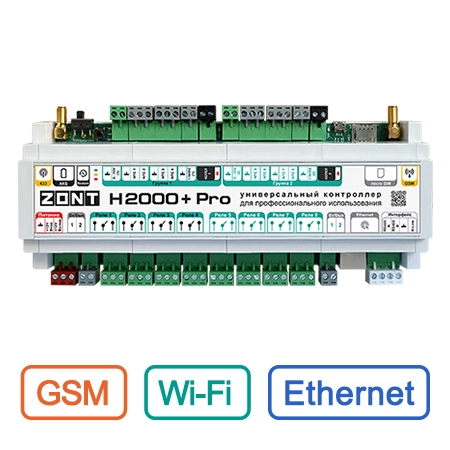 Универсальный контроллер ZONT H2000+ PRO – прибор для профессиональной автоматизации и дистанционного управления инженерными системами любой сложности.